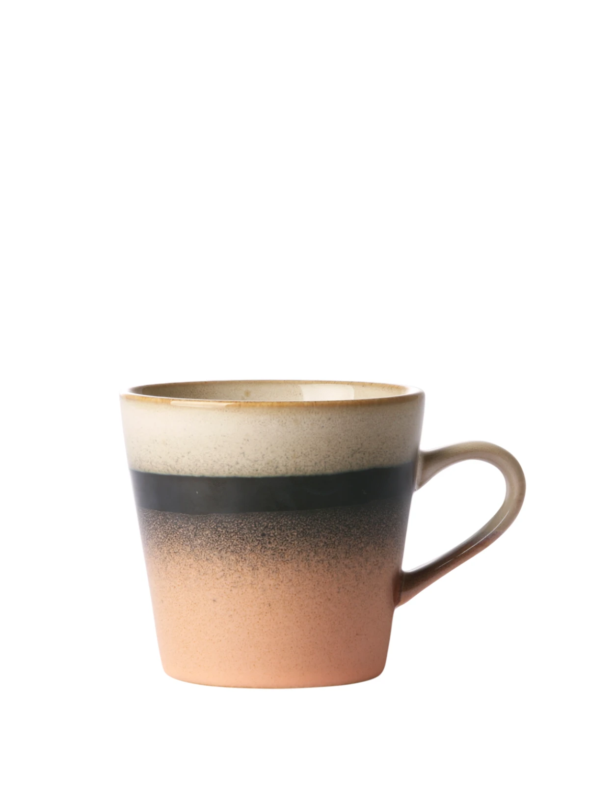 Ceramic americano mugs in different colours from our popular 70s ceramics series. The mugs are all unique due to the handmade finish. Whether you are a first time lover of our 70s ceramics, or a long term collector, there is always room for more. Again, more funky colours, new finishes and rusty designs found their way into our collection of mugs, bowls and plates. Note these are smaller than our cappuccino mugs. Colour: multicolour.