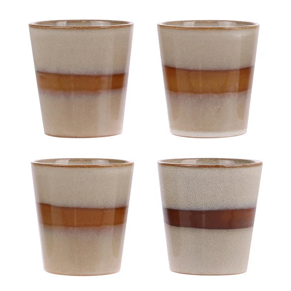 Mug Snow from our popular 70s ceramics series. The mugs are all unique due to the handmade finish. Whether you are a first time lover of our 70s ceramics, or a long term collector, there is always room for more. Again, more funky colours, new finishes and rusty designs found their way into our collection of mugs, bowls and plates.