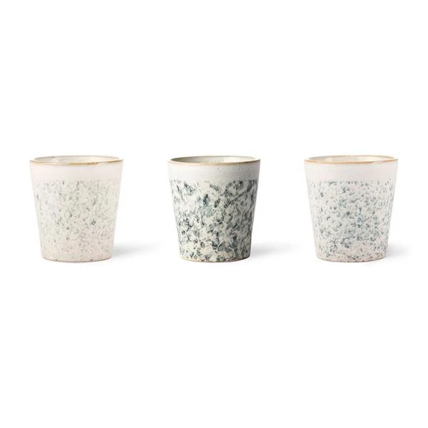 Deze mok uit onze populaire 70’s keramiek serie. De mokken zijn stuk voor stuk uniek door de handgemaakte afwerking. Of je nu voor het eerst van onze keramiek uit de jaren 70 houdt of een verzamelaar voor de lange termijn, er is altijd ruimte voor meer. Nogmaals, meer funky kleuren, nieuwe afwerkingen en roestige ontwerpen vonden hun weg naar onze collectie mokken, kommen en borden. Afmetingen: 7,5×7,5x8cm Inhoud: 180ml