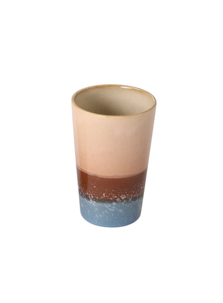 A ceramic tea mug from our popular 70s ceramics series. The mugs are all unique due to the handmade finish. Whether you are a first time lover of our 70s ceramics, or a long term collector, there is always room for more. Again, more funky colours, new finishes and rusty designs found their way into our collection of mugs, bowls and plates. Dimensions: 8.7 x 8.7 x 13.5cm Material: Stoneware Remark: Reactive glaze Food safe: Yes Dishwasher proof: Yes Microwave proof: Yes Product capacity: 475ml Product weight: 700g