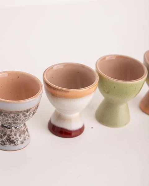 Mit diesem Set aus vier hübschen Eierbechern der Serie Keramik 70’s von HKliving hast du von nun an immer mindestens einen guten Grund, deine Liebsten zu einem ausgedehnten Frühstück einzuladen! Die wunderschönen Eierbecher aus Steingut setzen mit ihrem individuellen Farbdesign besondere Akzente auf deinem Frühstückstisch und lassen sich ideal kombinieren. Entdecke bei uns im Shop weitere Produkte der Serie Keramik 70’s und stelle deine ganz persönliche Kollektion zusammen! handgefertigt einzigartig Keramik spülmaschinenfest size & fit 5,6cm (h) 4,8cm Ø Material Steingut Artikelnummer ACE6975