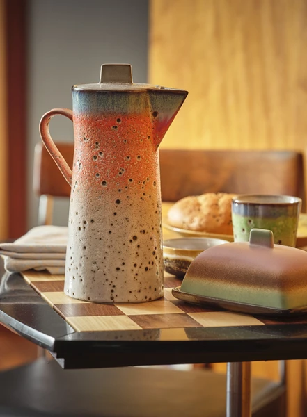 Just when you thought HK’s 70s ceramics collection couldn’t get any better, they decided to expand it with new handmade finishes and layers of colours to help keep your cabinetry as funky as ever. Indulge in your ultimate coffee experience with our new americano, ristretto, latte and cappuccino mugs! And we know a true coffee experience isn’t complete without their very own 70s ceramics spoons. Their newest additions will make sure you have the right spoon for every occasion; long for the days you just want to lounge and have a cup of tea, or small for when you want to kickstart your day with an americano. And that’s not all, for the new 21/22 collection they’ve added some new elements to help mix up your tableware. So spice up your meals with their all new salt and pepper set, relax with a nice cup of tea from their funky new teapot and sit back and relax with a fresh set of flowers in their 70s ceramic cylinder vases. Material: Stoneware Characteristic: Reactive glaze Differences may appear Dimensions: 10x13x23cm Capacity: 1150ml Food safe Dishwasher proof