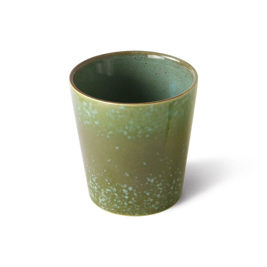 We are really excited to say that more funky colours, new finishes and rusty designs found their way into our 70s ceramics collection. Spring has sprung when taking a sip from these new spring greens coffee mugs!