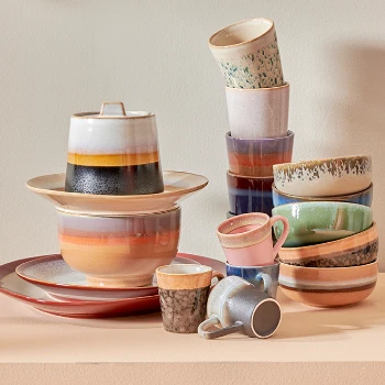 Dutch brand HKliving draw influences from all four corners of the globe to create their eclectic range of home accessories for modern homes. In contrast to Scandinavian brands who prefer a minimalist, ‘less is more’ aesthetic, HKliving’s style nods to diverse cultures as well as looking to the past, especially the 1970s era, to create their irreverent range of home accessories. Think Darwin-esque paperweights containing suspended jellyfish, cushions printed with Japanese style patterns, and ceramic plates, cups and platters inspired by a bohemian aesthetic.