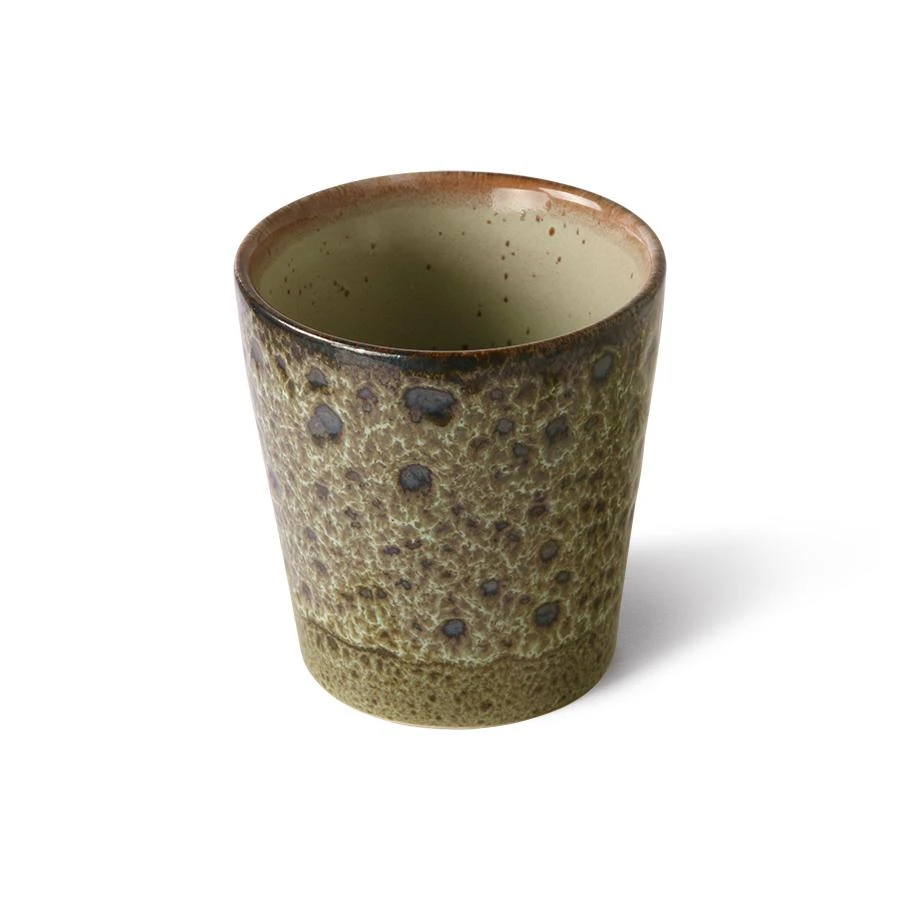 The Vulcano Coffee Mug from our popular 70’s ceramics series features a textural combination of green and brown tones created by a volcano glaze effect. This pattern is highly intricate and mesmerising.