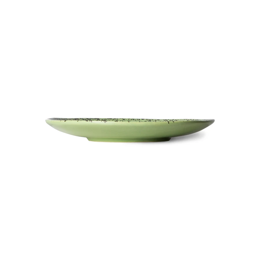 This set of 2 dessert plates are perfect for serving cake, a light lunch or for layering up ceramics for a beautiful table display. The punchy but soft green colour is brought to life with black detailing created by the reactive glaze.