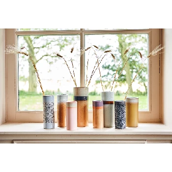 New from the 70s Ceramics collection by Dutch brand HKLiving, the 70s vase comes in many playful designs including this fabulous Venus design. Crafted from smooth ceramic and finished in a soft, tactile glaze these incredible cylinder forms are adorned with vibrant designs, each completely individual due to their handmade nature.