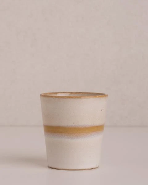 6 kleine handgemachte Becher in unterschiedlichen Farben und Designs Die 70’s Geschirrserie überzeugt mit ihrem besonderen, von den 70er Jahren inspirierten Design. Die verspielten Farbkombinationen machen den dekorativen Retro-Look perfekt. Durch die sorgfältige Herstellung in Handarbeit ist jedes Produkt der 70’s Kollektion ein Unikat. Gewollte Farb- und Formabweichungen unterstreichen den besonderen Charme der Geschirrserie. Retro Unikat spülmaschinenfest size & fit 7,5 x 7,5 x 8cm Füllmenge 200ml Material Steingut Artikelnummer 114363