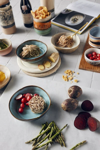 Ceramic pasta bowl in seventies style. *variations possible due to handmade character. Set of 2. Colour: Lagune Material: Stoneware Characteristic: Reactive glaze Differences may appear: Yes Description:70s ceramics: pasta bowls, lagune (set of 2) Product code:ACE7066 EAN code:8718921043939
