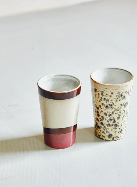 70s ceramics: tea mug in Dunes.Just when you thought their 70s ceramics collection couldn’t get any better, HK decided to expand it with new handmade finishes and layers of colours to help keep your cabinetry as funky as ever. Material: Stoneware Dimensions: 8,7×8,7×13,5cm Dishwasher proof: Yes Microwave proof: Yes Food safe: Yes Product capacity: 475ml Product weight: 350g Characteristic: Reactive glaze Differences may appear: Yes