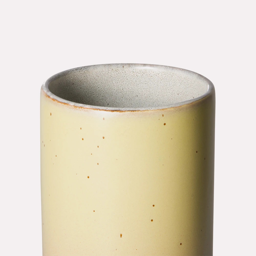 Ceramic earthenware vase with a cylindrical profile, enameled with elegant color and texture contrasts. Give your home a unique finish with this elegant decorative accessory that you can complete with dried flowers or small branches. Whether you are a first time lover of our 70’s ceramics or a long term collector, there is always room for more colours, more textures and more finishes, the source of inspiration is endless.