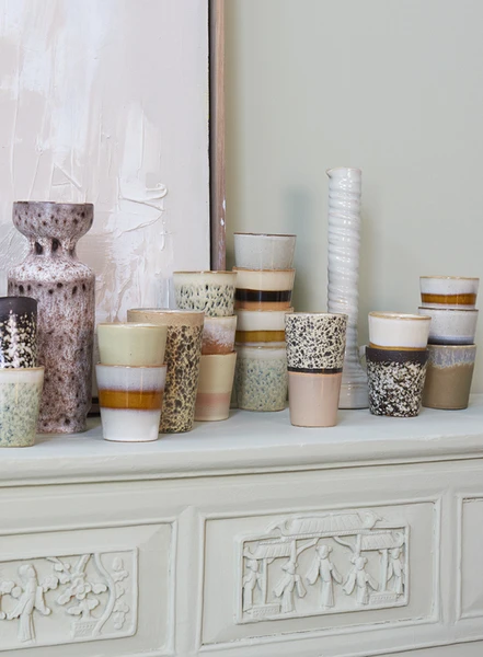 Dutch brand HKliving draw influences from all four corners of the globe to create their eclectic range of home accessories for modern homes. In contrast to Scandinavian brands who prefer a minimalist, ‘less is more’ aesthetic, HKliving’s style nods to diverse cultures as well as looking to the past, especially the 1970s era, to create their irreverent range of home accessories. Think Darwin-esque paperweights containing suspended jellyfish, cushions printed with Japanese style patterns, and ceramic plates, cups and platters inspired by a bohemian aesthetic.