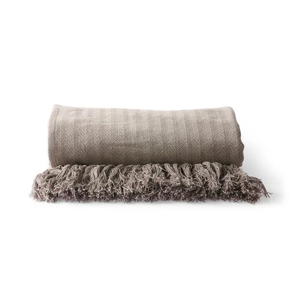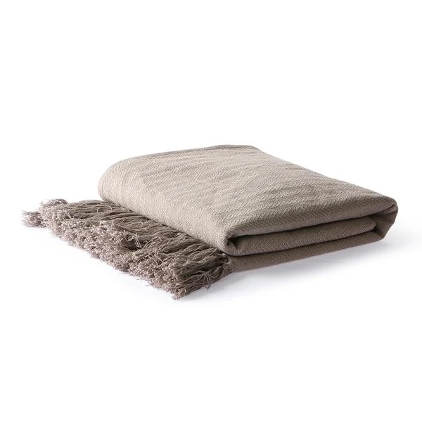 Cotton throw in the colour taupe. The stripes are zigzag crossed. colour: Taupe washing instructions : 30° Machine Wash, Do not Bleach, Medium Iron, Do Not Tumble Dry dimensions: 130x170cm product length/depth (cm): 130 product width (cm): 170 product weight (gr): 800 material: Cotton