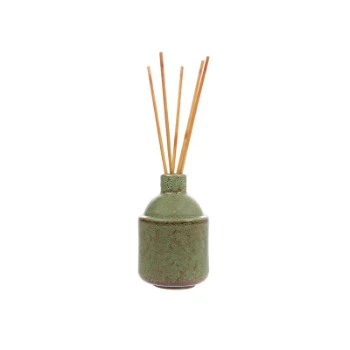 Air freshener in ceramic jar stick HK.8 with essence of GREEN BLOSSOM, from the Scandinavian firm HK Living. This air freshener is made up of a Ceramic vase in a nice Green color with a nice finish, the Fragrance in a separate bottle and the sticks to put in the ceramic vase together with the perfume.