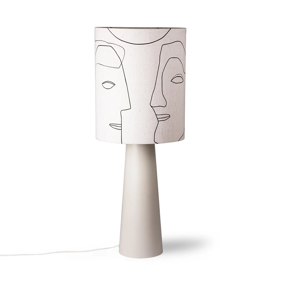 We love this luxurious linen lampshade, with abstract faces printed in black. Oversized lampshades are right on trend and create a real feature in any living space. It’s monochromatic look lends itself to any room style and sits well on bases both simplistic and neutral or bold and colourful.