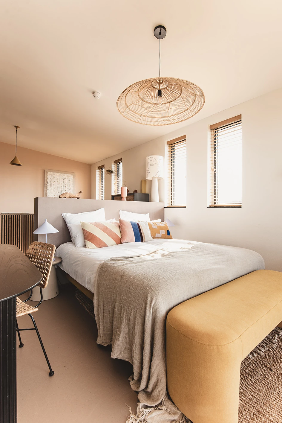 We recommend either the Off white stoneware base with handles for a bolder statement or the nude cone base for a slicker look (Both pictured).