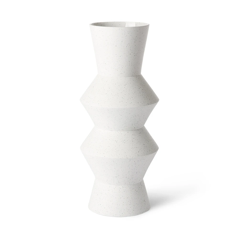 A handmade white speckled vase made of clay, by HK Living. A unique, contemporary accessory for your home. Large size.