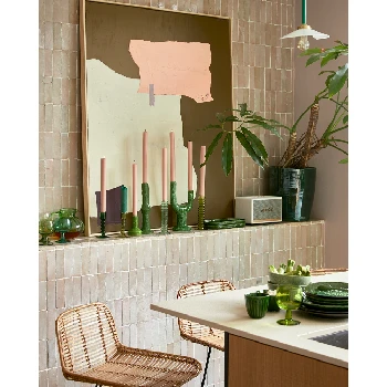 This striking candle holder is part of The Emeralds Collection: By HKLiving. Embracing the beauty of the colour green, this lime green ceramic candle holder is a key part of the range. The Moulded form creates tactile edges that are highlighted by the shiny glaze, revealing tones of the ceramic that lies underneath to bring extra textural elements.