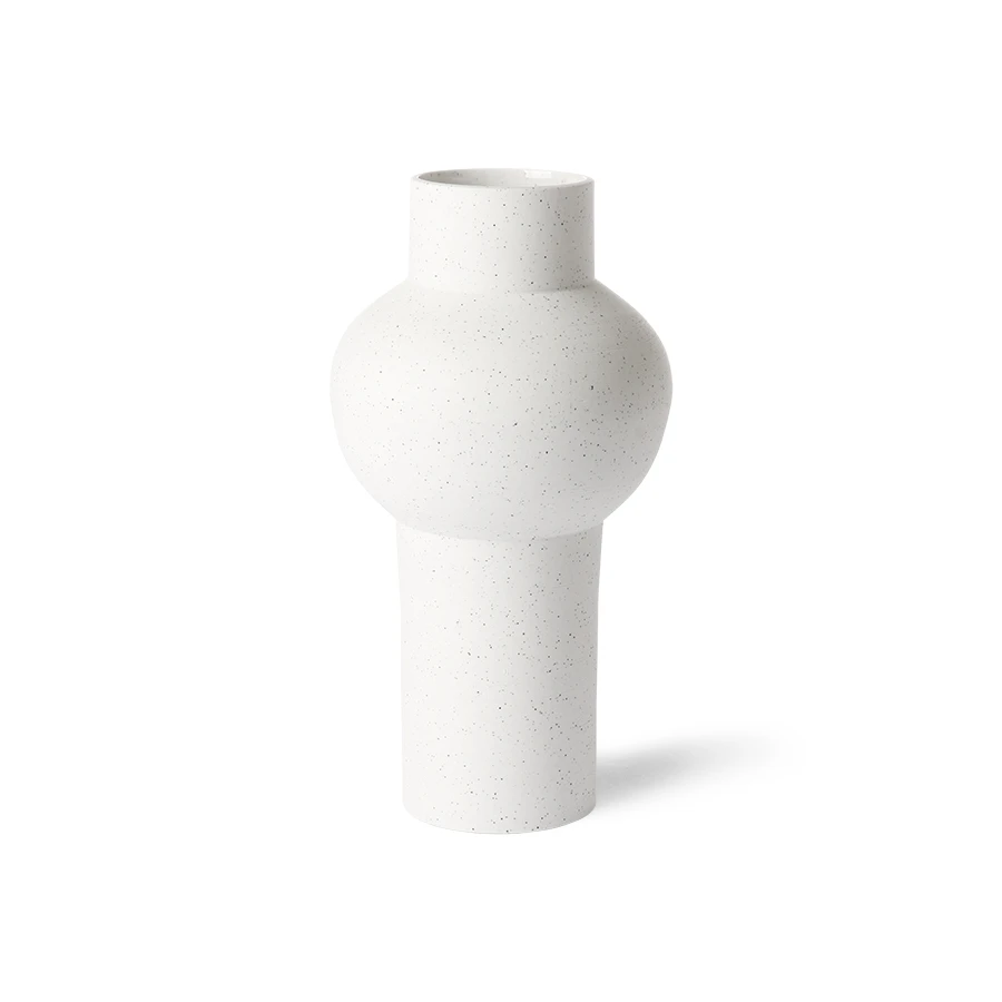 A handmade white speckled vase made of clay, by HK Living. A unique, contemporary accessory for your home.