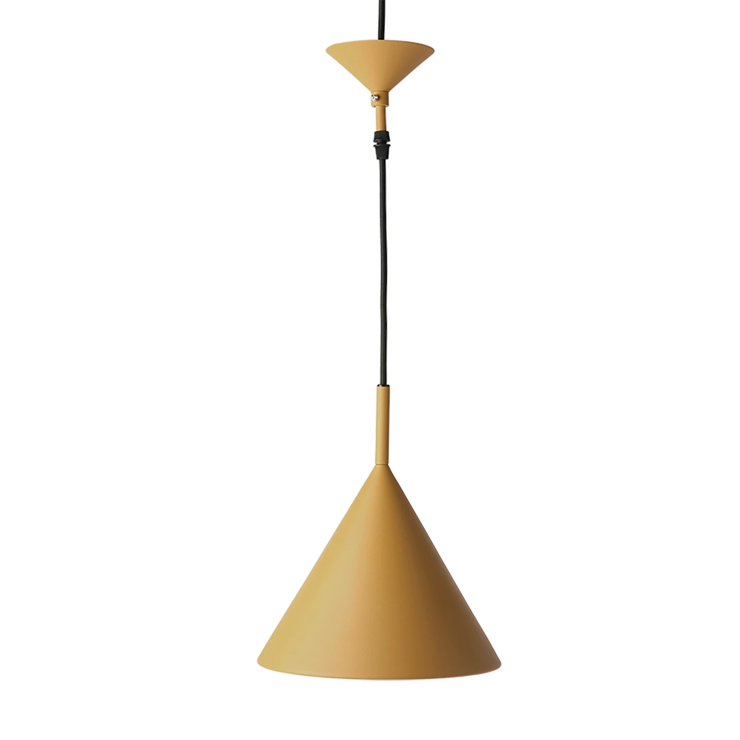 Pendant lamp made of metal in matt orche. Comes with a cable length of 150 cm and is suitable for E27, max. 60W.