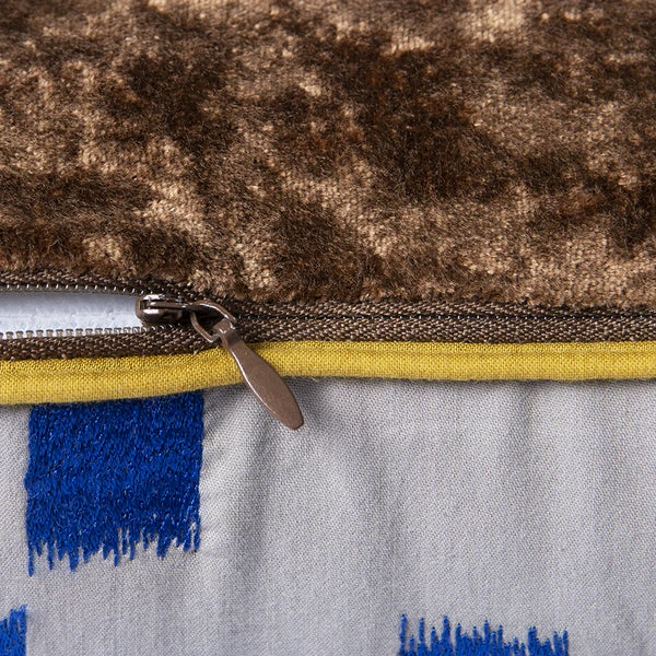 Printed cushion inspired by Japanese influences. The pillow has a floral print on the front & an abstract print on the back. ~ Size: 40 x 25cm Material: Front: 100% viscose, Back: 60% Viscose, 40% Cotton Care: machine wash cover at 30 degrees