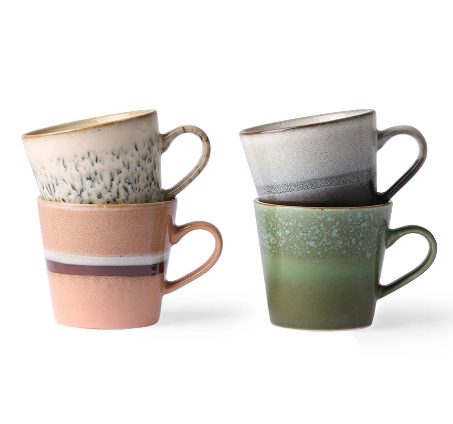 Dutch brand HKliving draw on vintage-inspired crockery and colourways for their covetable 70s ceramic collection – of which this set of four Cappuccino Mugs are part. They take shape in homely and earthy 70’s tones, with each one showcasing a gorgeous glazed finish that affords them a high-shine exterior. Textural elements are introduced to some of the mugs for added dynamism and a timeless, rustic patina. As with all the brand’s 70s ceramic range, this set comes packed in an iconic black 70s ceramics gift box, making them an ideal present, whatever the occasion. Dimensions: 12×9.5×8.5cm. Capacity: 300ml.