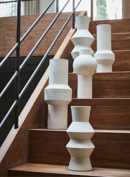 A handmade white speckled vase made of clay. Put other nice vases, flower pots or deco objects around it to complete the picture! colour: White/crème product height (cm): 32 product diameter (cm): 13 product weight (gr): 1993 material: Speckled clay decorative use only: No water resistant: Yes outdoor use: No