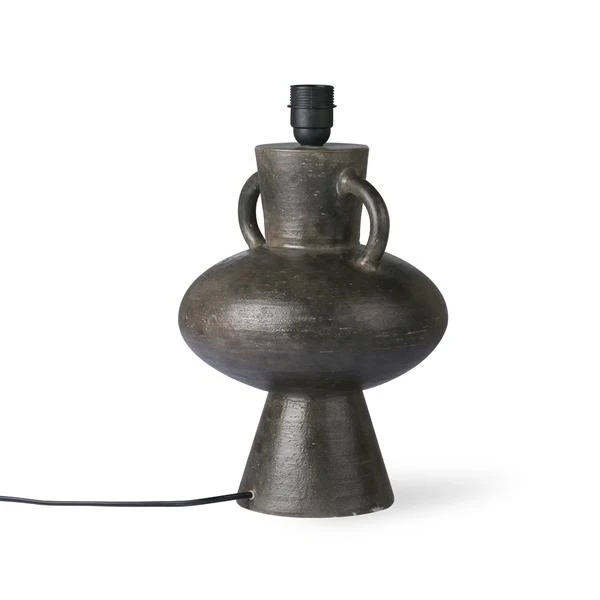 A handmade lamp base made of earthenware in charcoal.