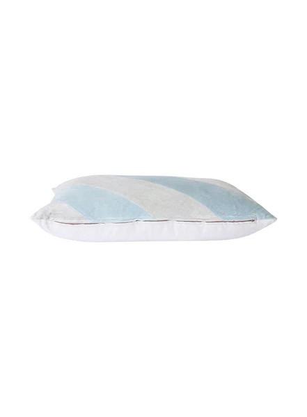 Striped velvet cushion in the colour ice blue. Including cushion filling colour: Ice blue washing instructions : 30 degree machine wash dimensions: 40x60cm product length/depth (cm): 60 product width (cm): 40 product weight (gr): 700 material: Front : 100% Cotton Velvet, Back : 100% Cotton, Filling : 100% Pollyester