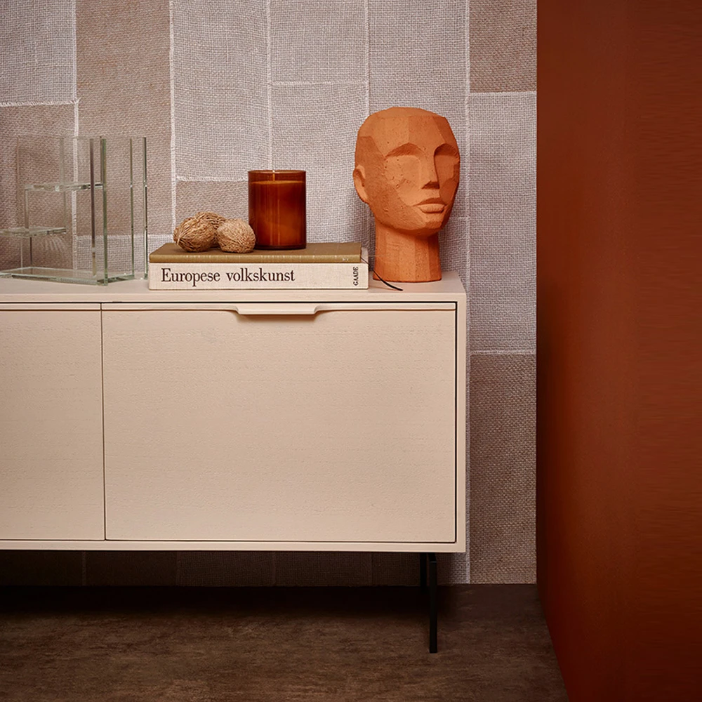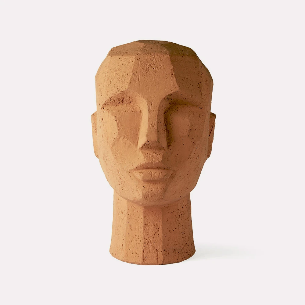 Decorative figure in the shape of a faceted head in natural red clay with a rough finish with a sculptural and striking design. The material has been left unglazed to accentuate its raw and artistic look, making it a piece that will add a touch of class to any interior. Clean with a cloth dampened with water. Not resistant to immersion in water. Not suitable for outdoor use.