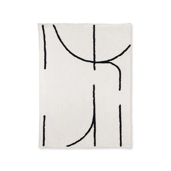 White throw with black coloured tufted lines. product code: TTS1030 colour: Black/natural washing instructions : Hand wash only dimensions: 130x170cm product length/depth (cm): 130 product width (cm): 170 product weight (gr): 1200 material: 70% Cotton, 30% Polyester.